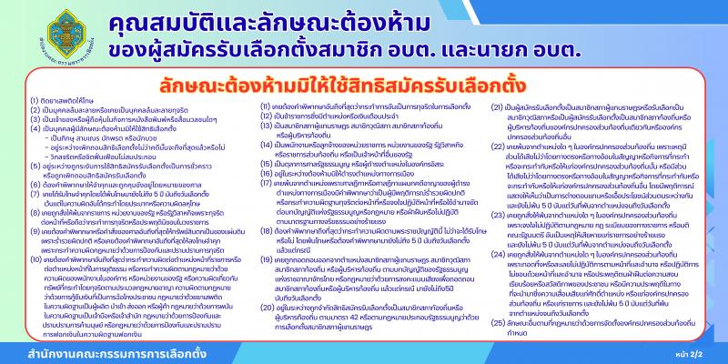 ประชาสัมพันธ์คุณสมบัติและคุณลักษณะต้องห้ามของผู้สมัครรับเลือกตั้งสมาชิกสภาองค์การบริหารส่วนตำบลและนายกองค์การบริหารส่วนตำบล