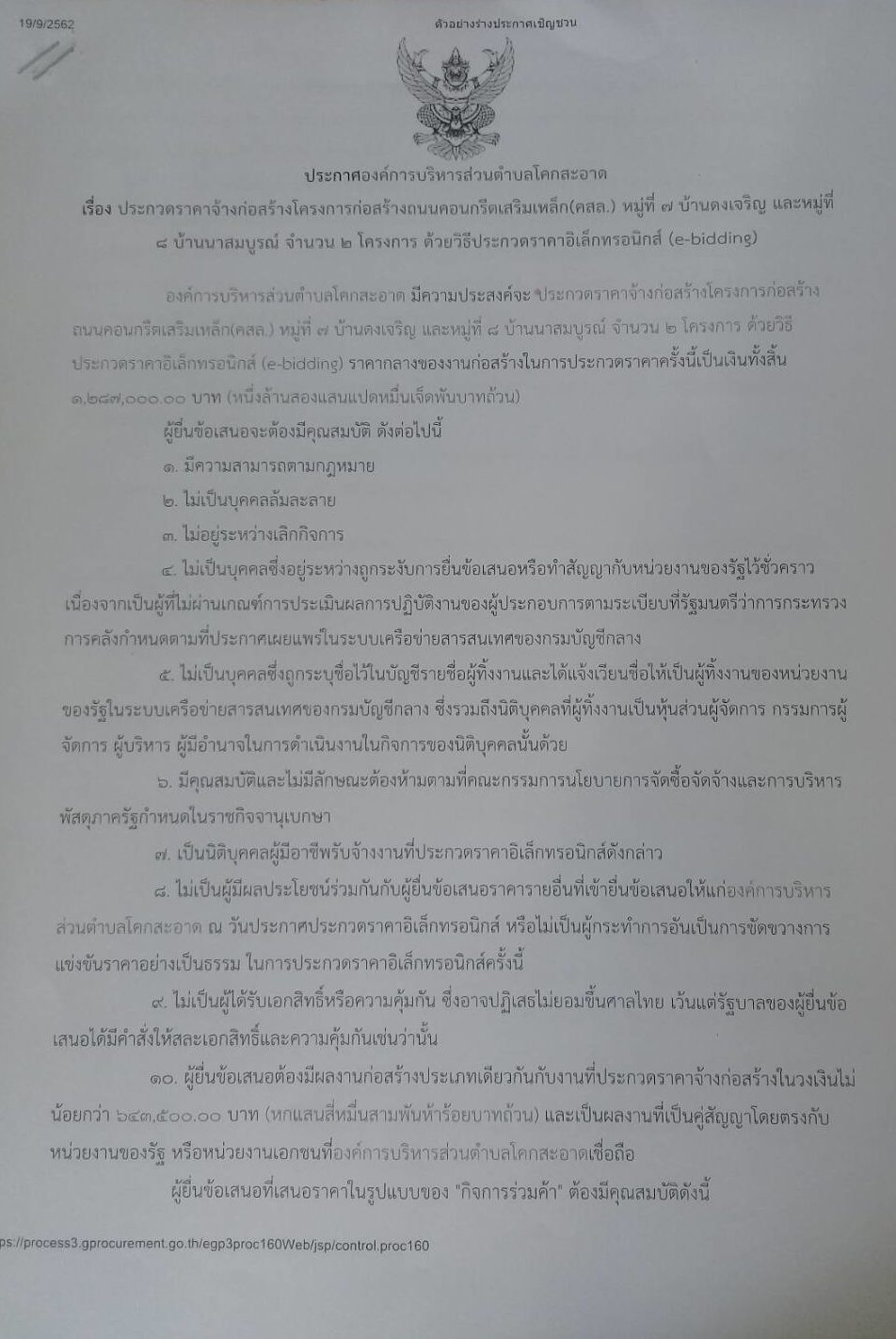 ประกวดราคาจ้างก่อสร้างโครงการก่อสร้างถนนคอนกรีตเสริมเหล็ก(คสล.)หมู่ที่ ๗ บ้านตงเจริญ และหมู่ที่ ๘ บ้านนาสมบูรณ์ จำนวน ๒ โครงการ ด้วยวิธีประกวดราคาอิเล็กทรอนิกส์(e-bidding)