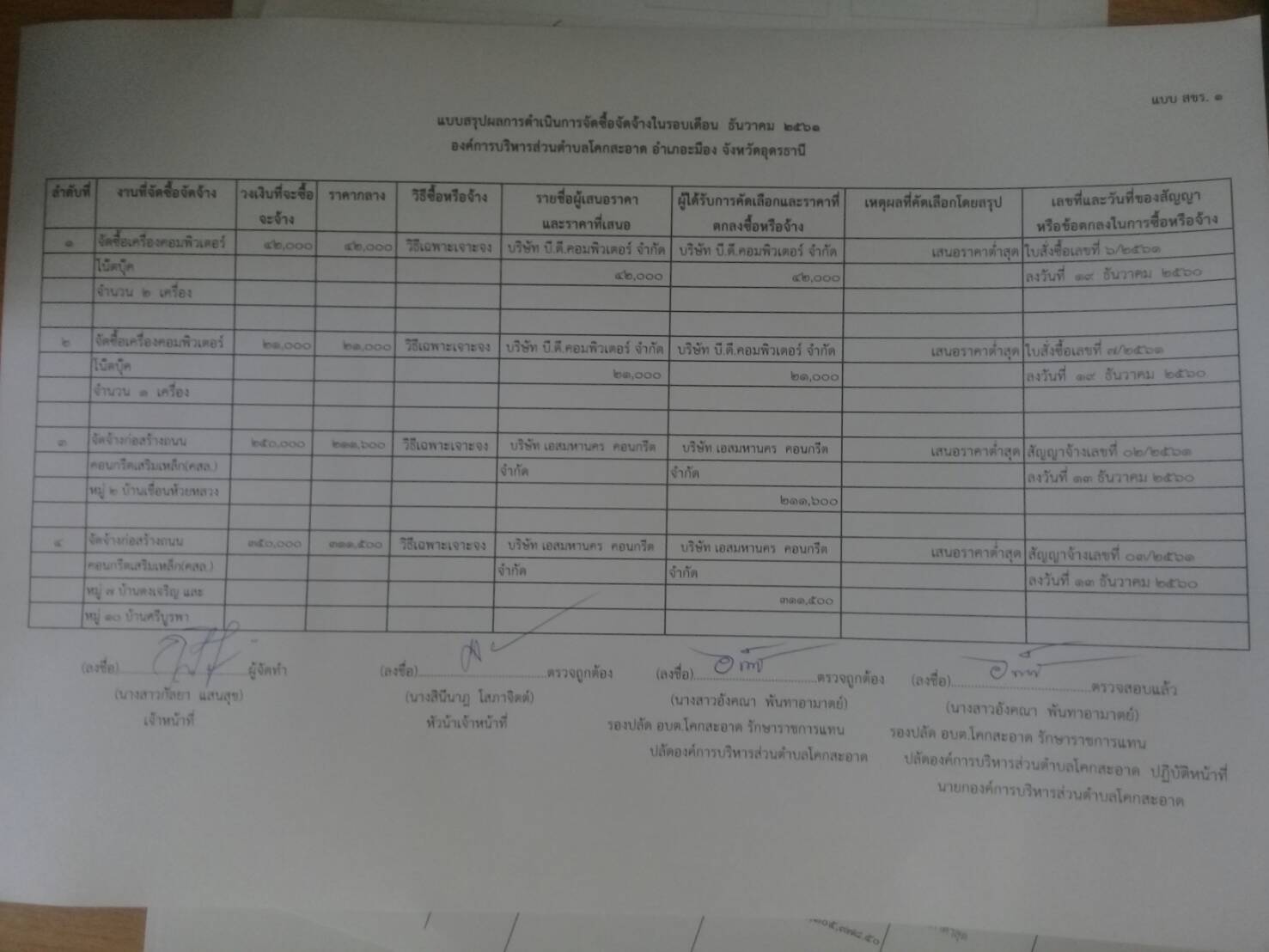 สรุปผลการจัดซื้อจัดจ้างประจำปีงบประมาณ 2561