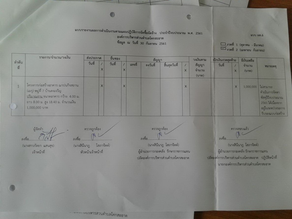 รายงานผลการจัดซื้อจัดจ้างประจำปีงบประมาณ 2561