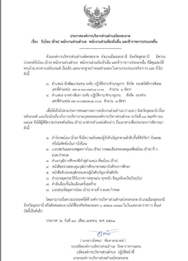 ประกาศรับโอน(ย้าย)พนักงานส่วนท้องถิ่นหรือข้าราชการประเภทอื่น