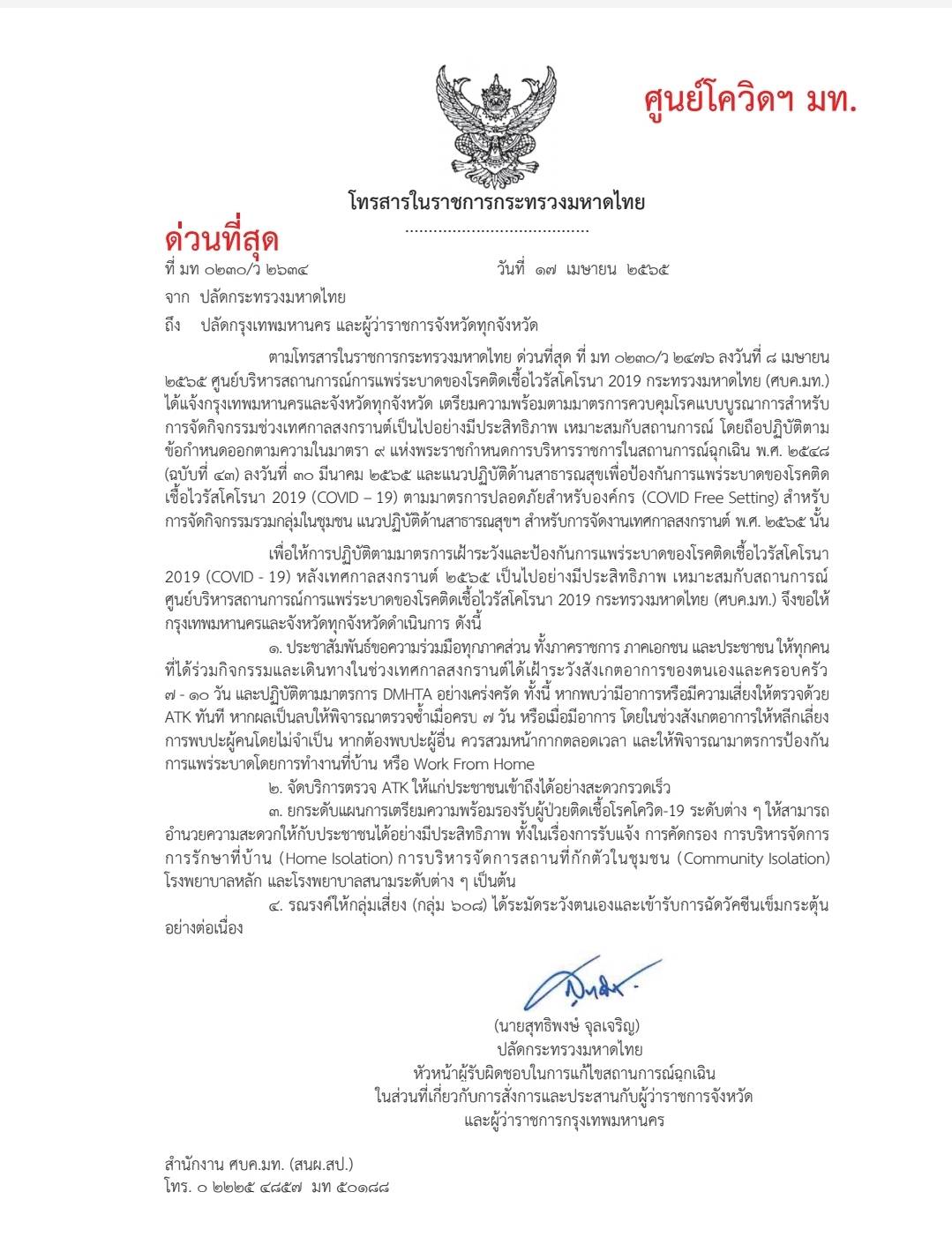 หนังสือด่วนที่สุดจาก ศูนย์บริหารสถานการณ์การแพร่ระบาดของโรคติดเชื้อไวรัสโคโรนา 2019 กระทรวงมหาดไทย (ศบค.มท.)