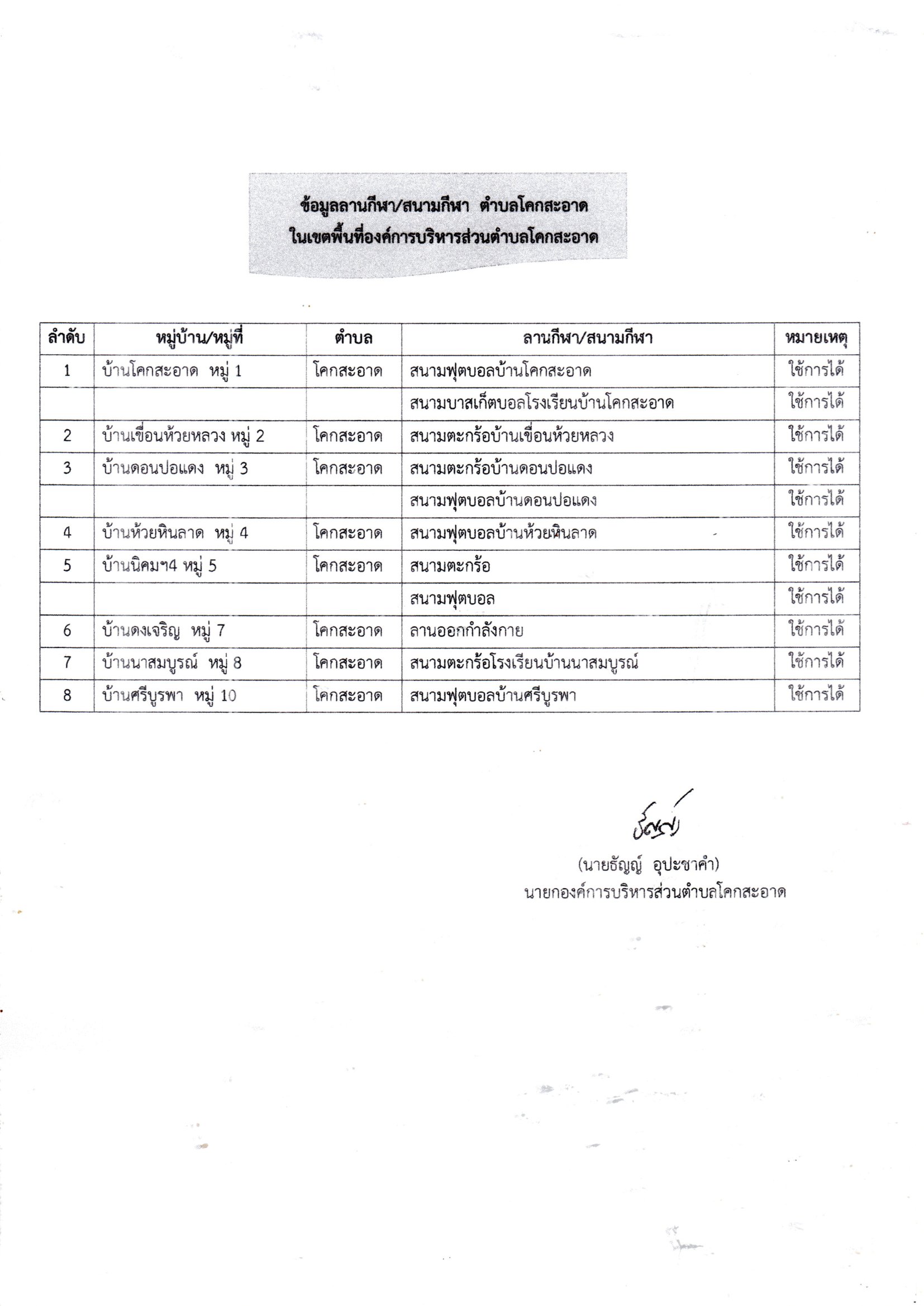 ประชาสัมพันธ์ข้อมูลลานกีฬา/สนามกีฬาที่ใช้การได้ในตำบลโคกสะอาด
