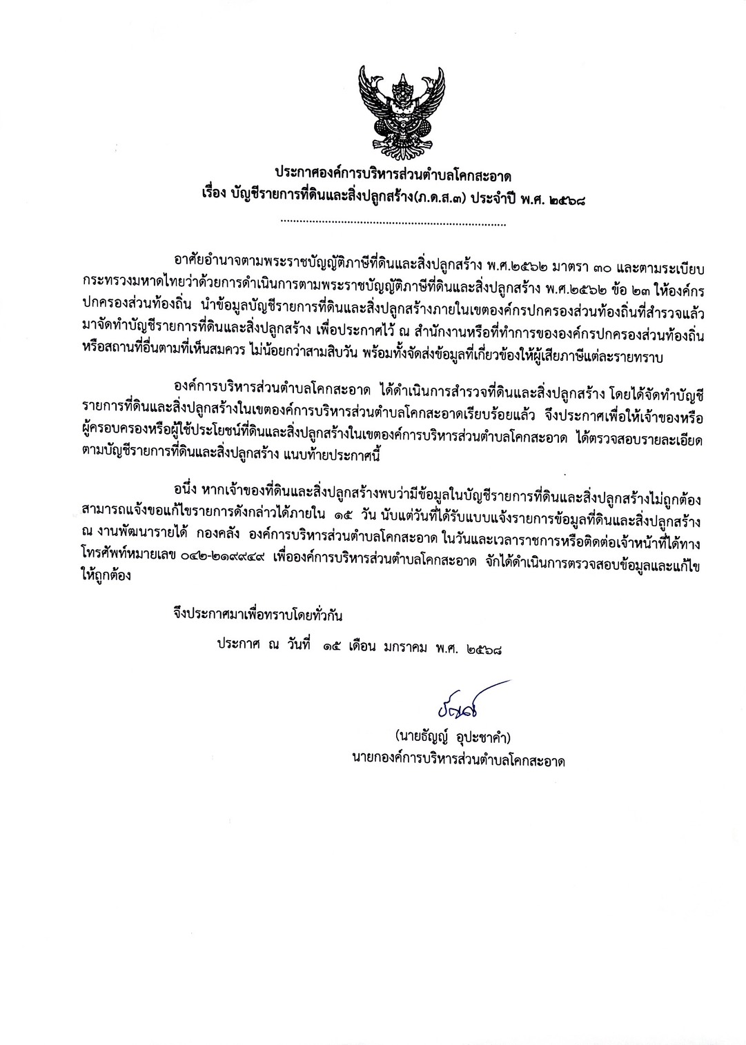 ประกาศ เรื่อง บัญชีรายชื่อรายการที่ดินและสิ่งปลูกสร้าง (ภ.ด.ส.3) ประจำปี พ.ศ.2568